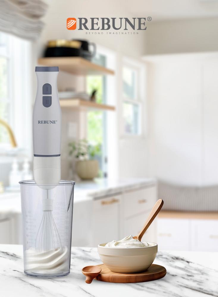 - تصميم مدمج وخفيف الوزن: خلاط يدوي Rebune مثالي للمطابخ الصغيرة أو للاستخدام اليومي السريع.
