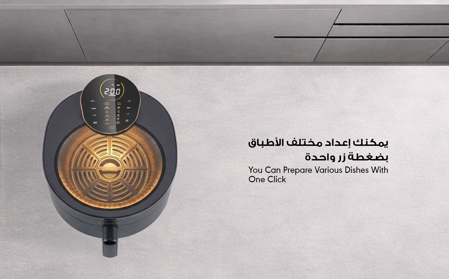 ستمتع بتجربة طهي مثالية مع القلاية الهوائية بسعة 5 لتر وقوة 1500 واط التي تمنحك القدرة على إعداد وجبات صحية ولذيذة دون الحاجة إلى إضافة الكثير من الزيت. بفضل الشاشة الرقمية التي تعمل باللمس، يمكنك ضبط درجة الحرارة والوقت بسهولة تامة، مما يجعل الطهي أكثر راحة وسلاسة.