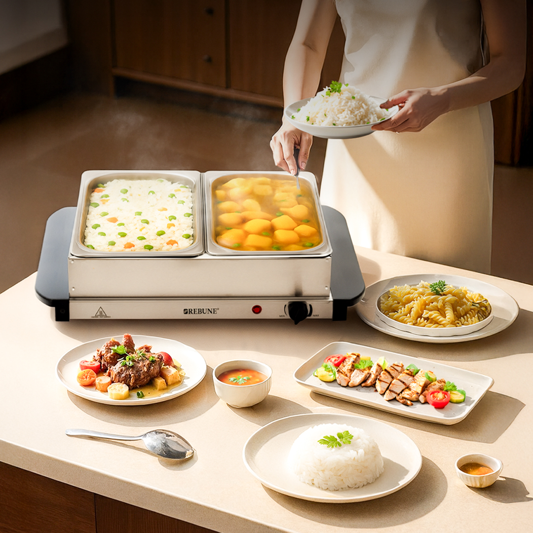 استمتع بتقديم الطعام دافئًا في كل وقت مع جهاز تسخين الطعام من ريبون، المصمم خصيصًا لتلبية احتياجات العائلات الكبيرة والمناسبات، أو لأصحاب المطاعم والبوفيهات.