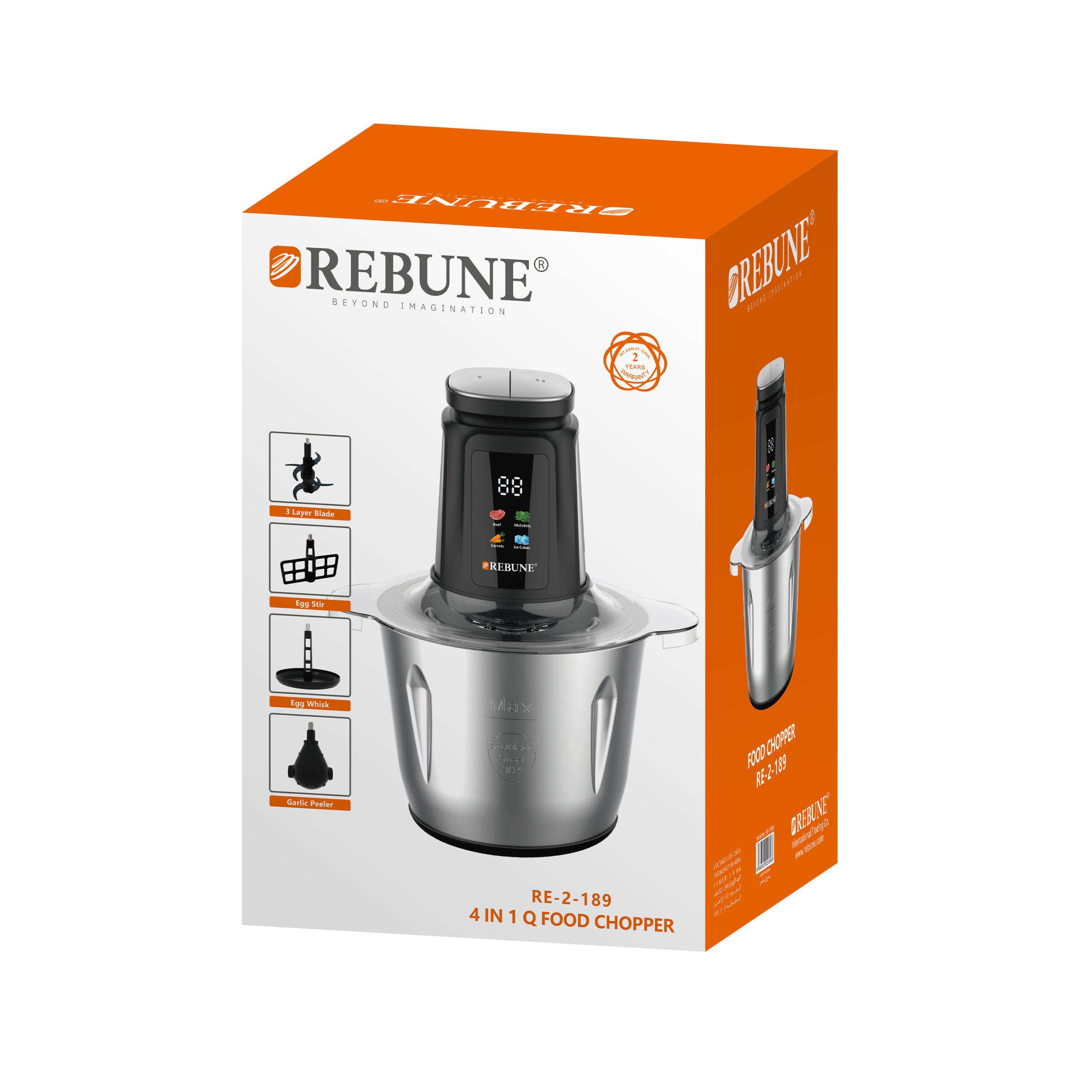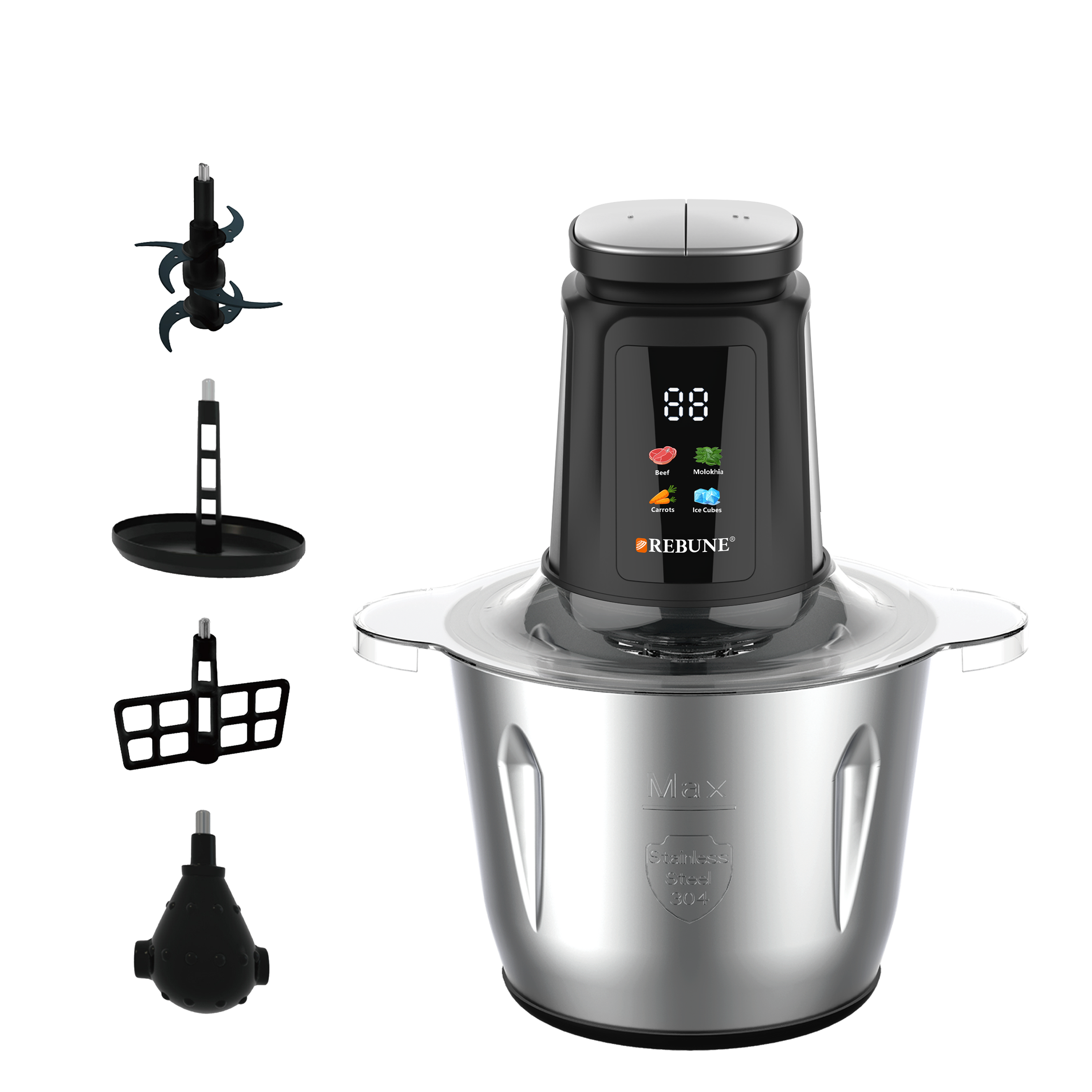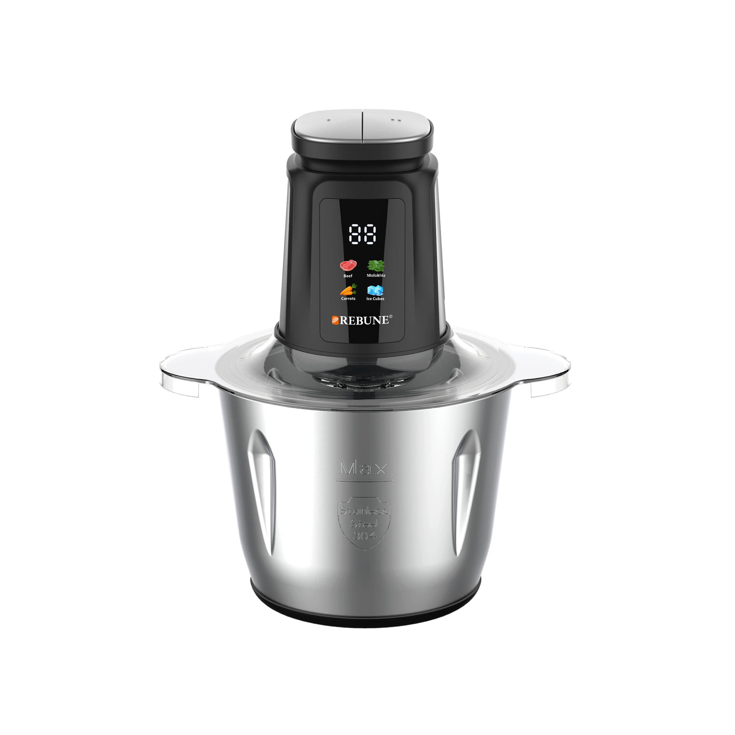 ودّع عناء الفرم اليدوي واستمتع بسهولة التحضير مع فرامة خضار ولحوم ريبون. تصميم أنيق باللون الأسود و وعاء من الستانلس ستيل المقاوم للصدأ بسعة مثالية، شفرات ستانلس حادة، وشاشة رقمية تسهّل عليك التحكم بكل خطوة.