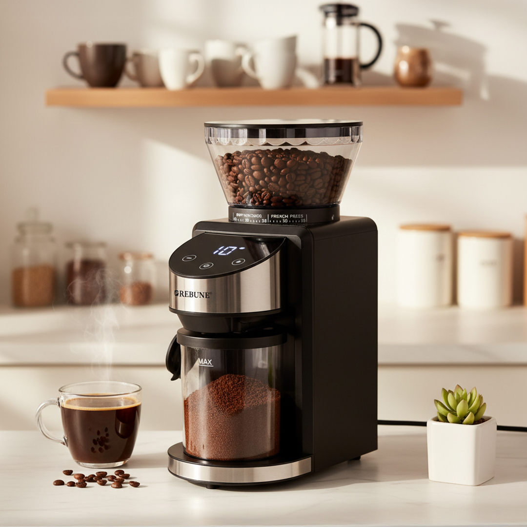 مطحنة القهوة الرقمية ريبون RE-2-194 – تحكم دقيق لطحن مثالي لكل نوع قهوة