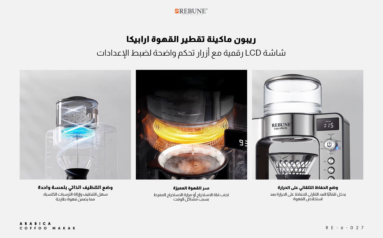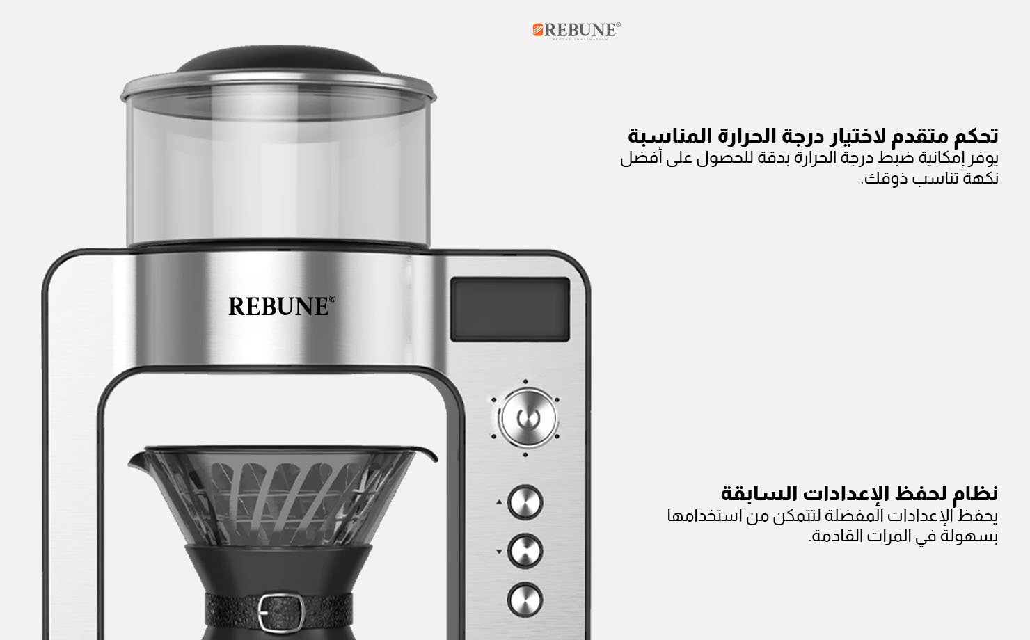• إعدادات متقدمة وخاصية تحكم في درجة حرارة الماء لتقطير القهوة وفقاً لتفضيلاتك الشخصية
