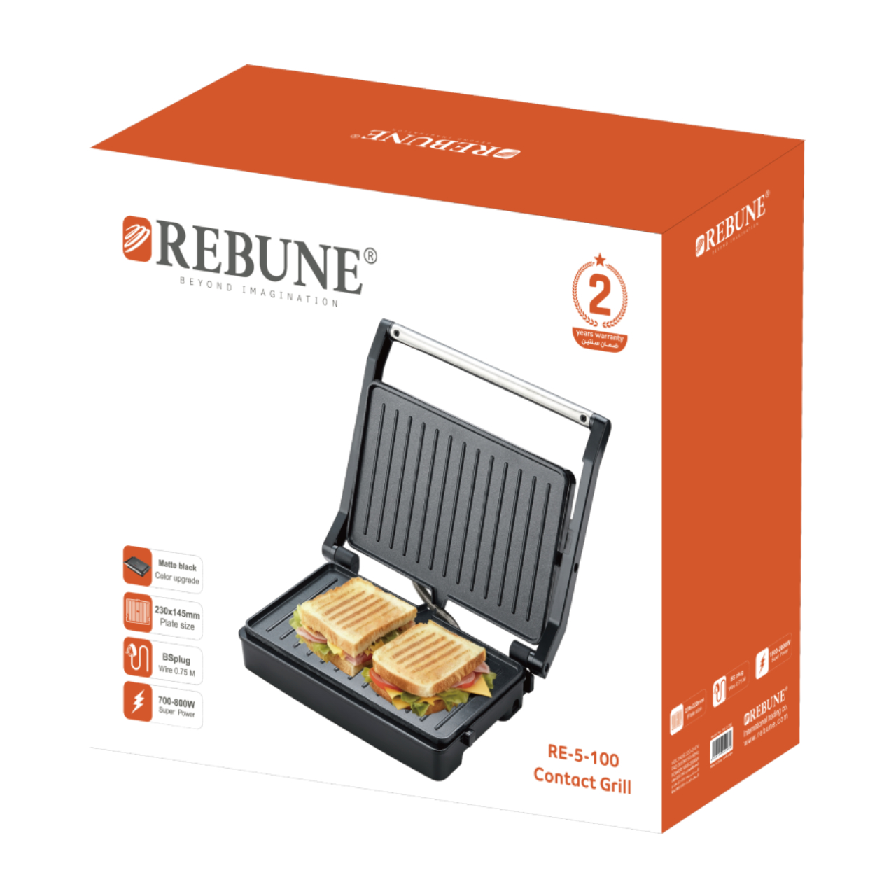 شواية كونتاكت جريل كهربائية ميني من ريبون RE-5-100 – حجم صغير وأداء ذكي للاستخدام اليومي