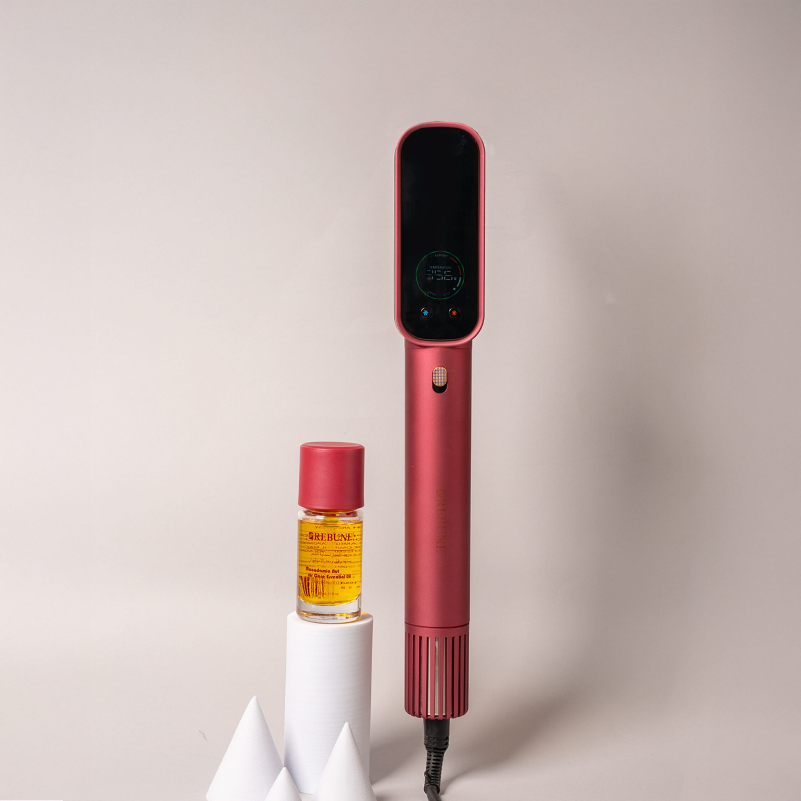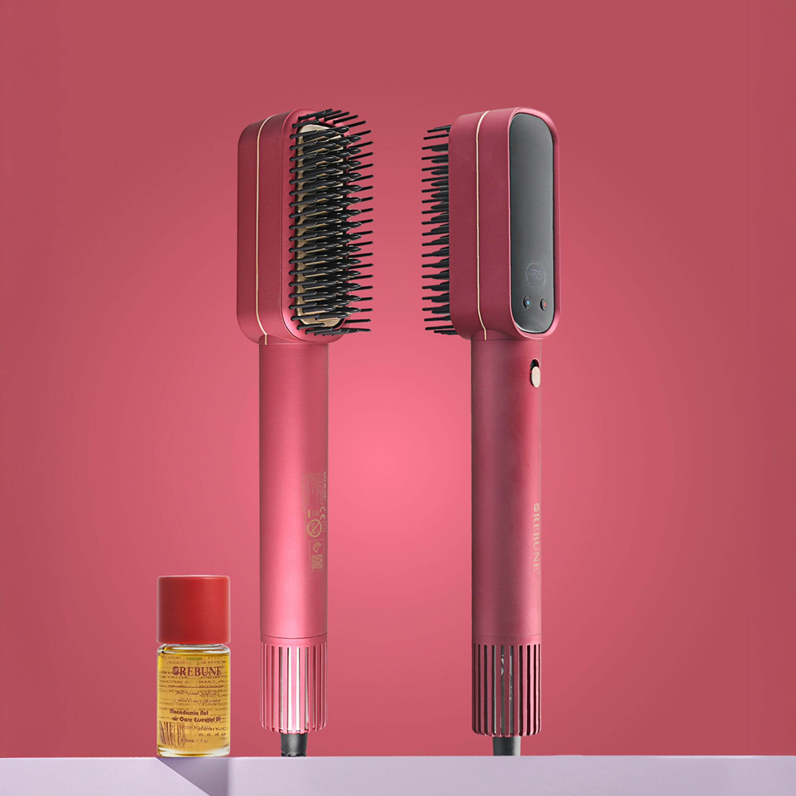 فرشاة فرد الشعر الاحترافية مع ميزة الهواء البارد + زيت حماية للشعر – 110 واط – وردي عميق