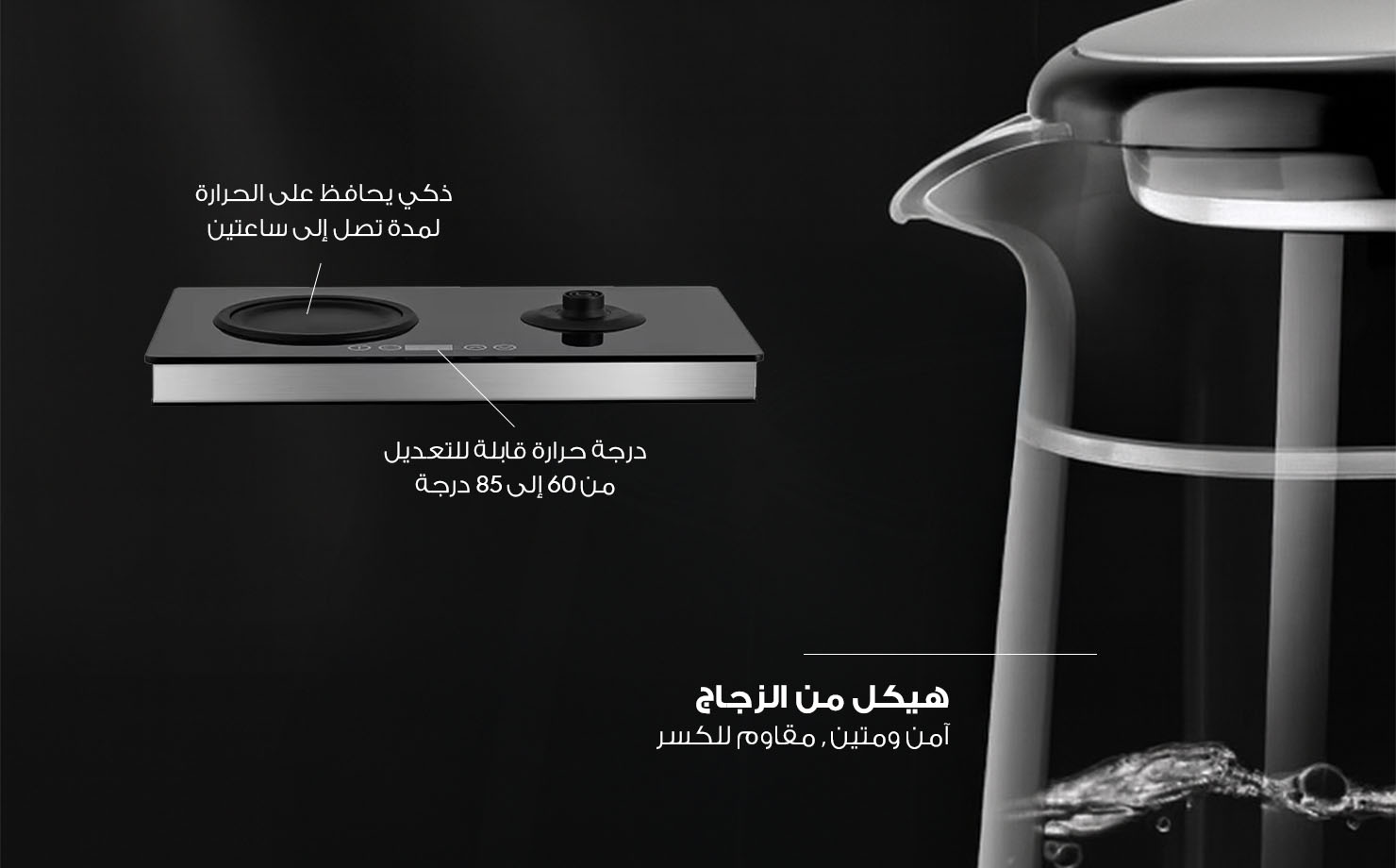 بقوة 1500 واط ونظام تحكم حراري من 60 إلى 85 درجة، يتيح لك الطقم ضبط درجة الحرارة حسب نوع المشروب الذي تحضره. سواء كنت تفضل الشاي الخفيف أو القوي أو القهوة، يوفر لك الطقم مرونة كاملة، مع قاعدة متينة من الستيل والزجاج الحراري لتحمل الاستخدام اليومي بكفاءة عالية.