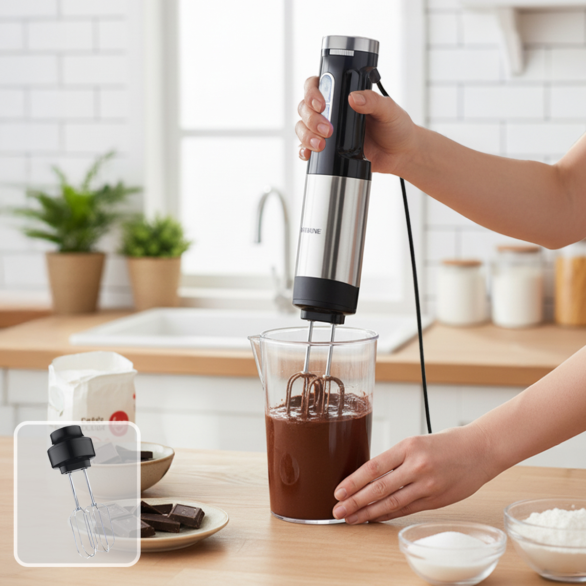 اجعل مهام المطبخ أسهل وأكثر كفاءة مع خلاط ريبون اليدوي المتعدد الوظائف. يتميز بقوة محركه وجودة ملحقاته لتلبية احتياجاتك المختلفة من التقطيع والفرم والخفق، بفضل تصميمه المتكامل وسعة وعائه الكبيرة، يمكنك تحضير كميات وفيرة بسرعة وسهولة.