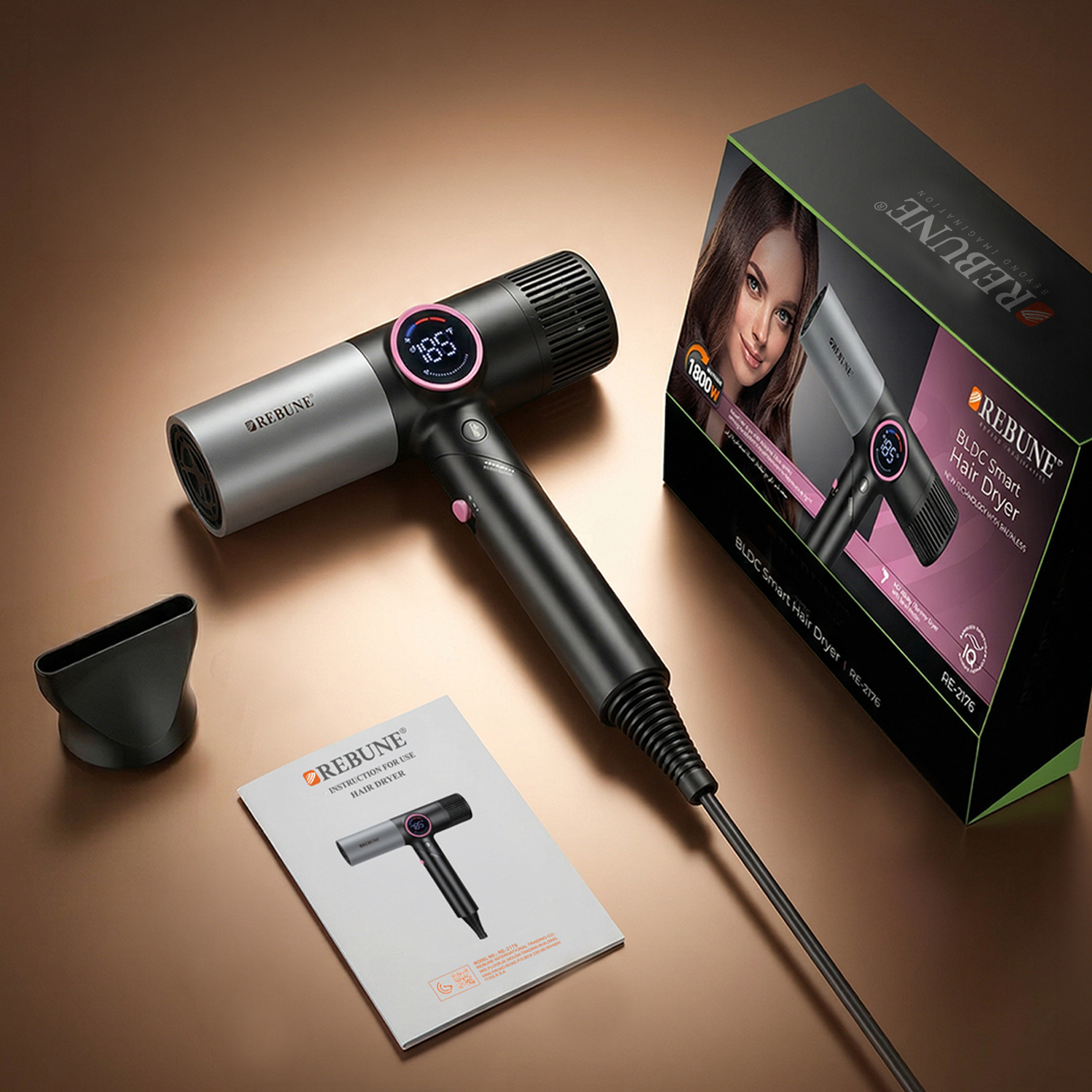 ارتقي بتجربة التصفيف إلى مستوى احترافي مع مجفف الشعر الأيوني REBUNE المزود بمحرك BLDC فائق السرعة بسرعة دوران تصل إلى 110,000 دورة في الدقيقة. يمنحك هذا المجفف تجفيفًا سريعًا ودقيقًا دون التأثير سلبًا على صحة شعرك. يتميز بتقنية الأيونات السالبة التي تعزز لمعان الشعر وتحميه من الجفاف، بالإضافة إلى شاشة رقمية Nixie تعرض كل الإعدادات بوضوح. تصميمه العصري والقابل للطي يجعله خيارك المثالي سواء في المنزل أو أثناء السفر.