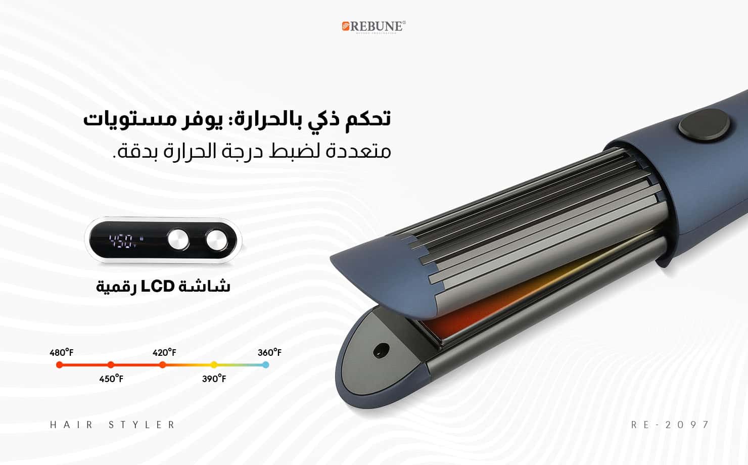 اختاري درجة الحرارة المثالية لشعرك مع إعدادات مرنة تتراوح بين 250 إلى 480 فهرنهايت. شاشة LCD الرقمية تسهّل ضبط الحرارة بدقة، مما يضمن الحصول على نتائج تصفيف مثالية لكل نوع شعر دون التسبب بأي ضرر.