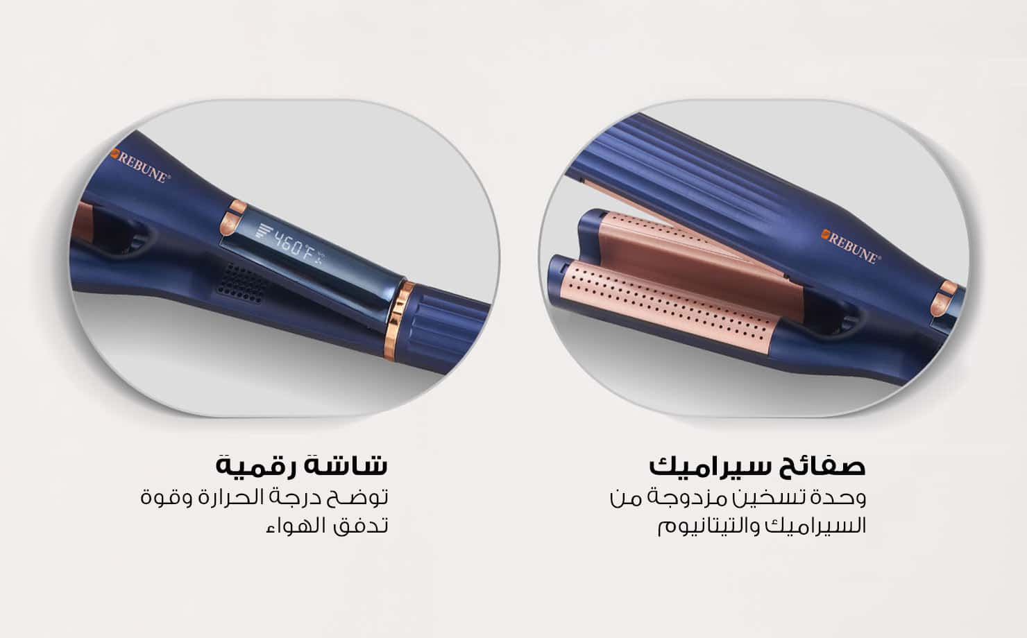 يأتي مملس الشعر ريبون بوحدة تسخين مزدوجة تجمع بين السيراميك والتيتانيوم لتوزيع حرارة متساوٍ يمنح شعرك تنعيمًا فوريًا ولمسة لامعة تدوم. يوفر درجات حرارة قابلة للتحكم من 260 إلى 460 فهرنهايت لتناسب جميع أنواع الشعر، مع إمكانية التمليس والتمويج بسهولة بفضل التصميم 2 في 1 الذي يجعل أداة واحدة تكفي لكل احتياجاتك اليومية.