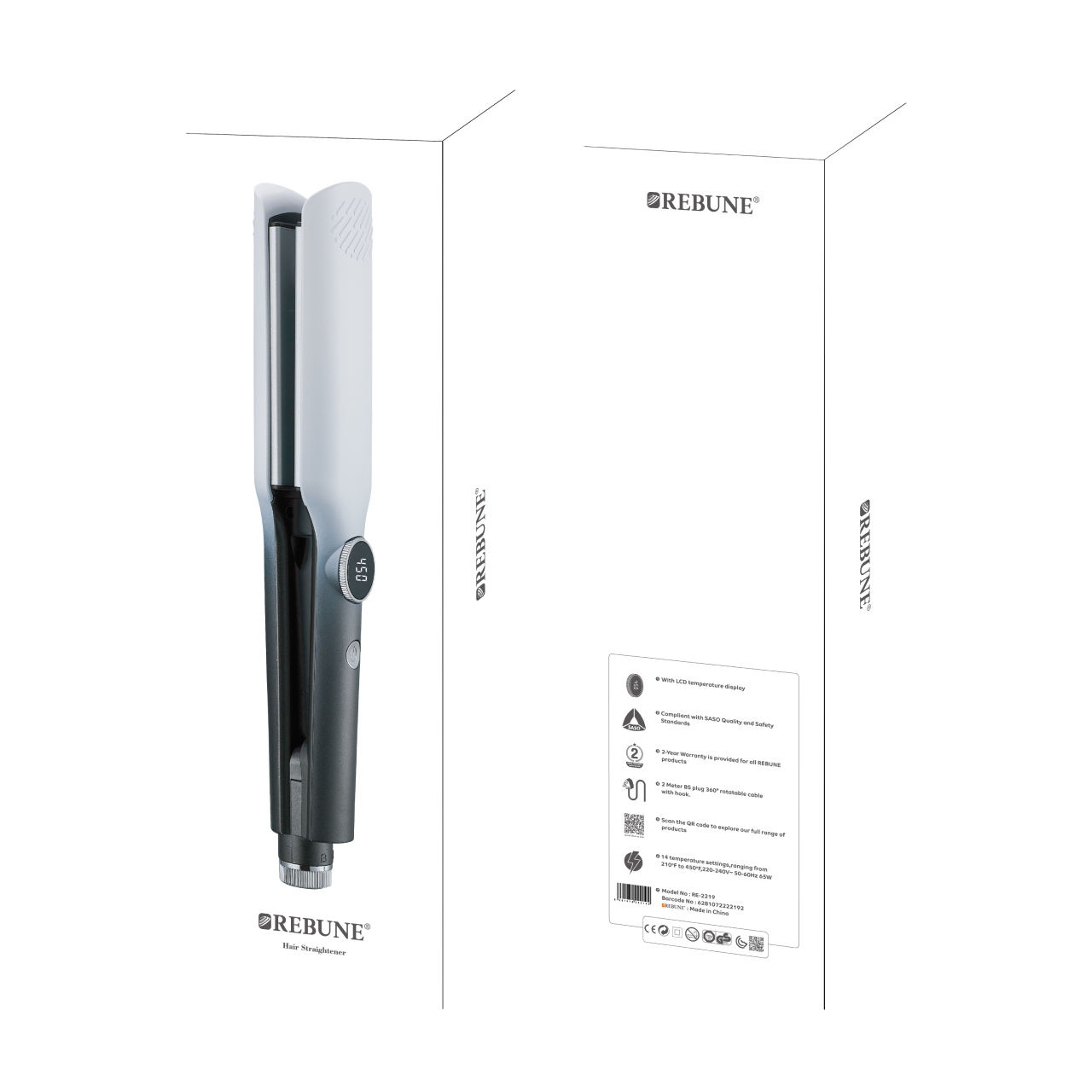 تصميم أنيق بتدرج لوني من الفضي إلى الرمادي الداكن يمنحها مظهرًا احترافيًا، مع أداء قوي وتحكم دقيق في الحرارة. مكواة فرد الشعر RE-2219 من rebune مزودة بشاشة LCD لعرض درجة الحرارة بدقة، مع 14 مستوى حرارة لتناسب جميع أنواع الشعر من الناعم حتى الكثيف.