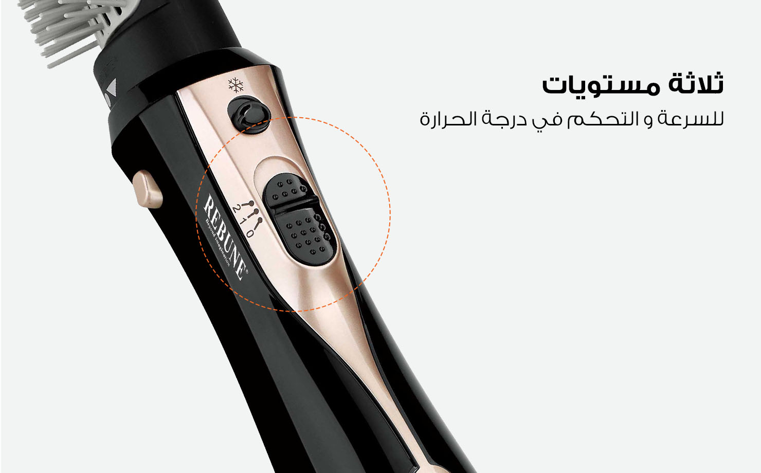 - ثلاث مستويات لقوة دفع الهواء: لتجفيف وتصفيف مثالي حسب نوع شعرك.