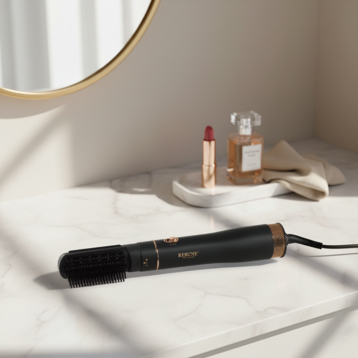 - مرونة وسهولة في الاستخدام: Rebune استشوار بسلك دوار 360° ومقبض مريح يسهّلان الحركة أثناء التصفيف، لتحصلي على النتيجة المطلوبة بدون تعب.