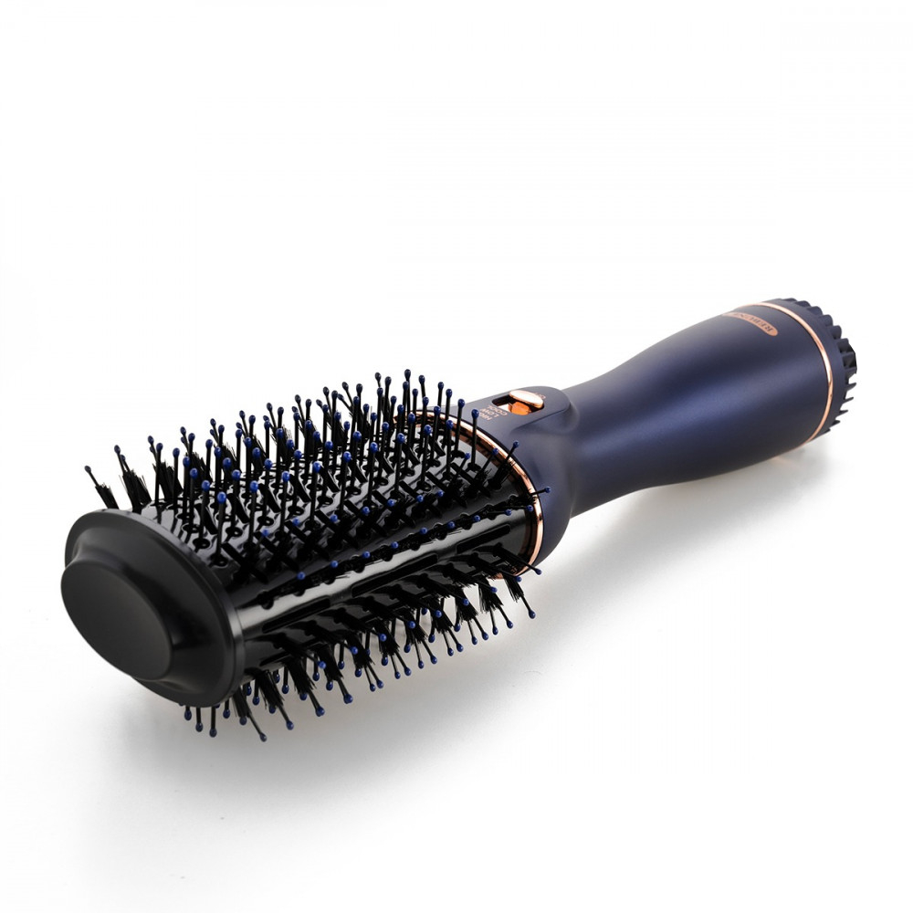 - فرشاة بتصميم بيضاوي بشعيرات معنقدة ( مقاومة للحرارة ) ناعمة ومتينة ضد التشابك ولطيفة على الشعر ورؤوس مدببة لتدليك فروة الرأس