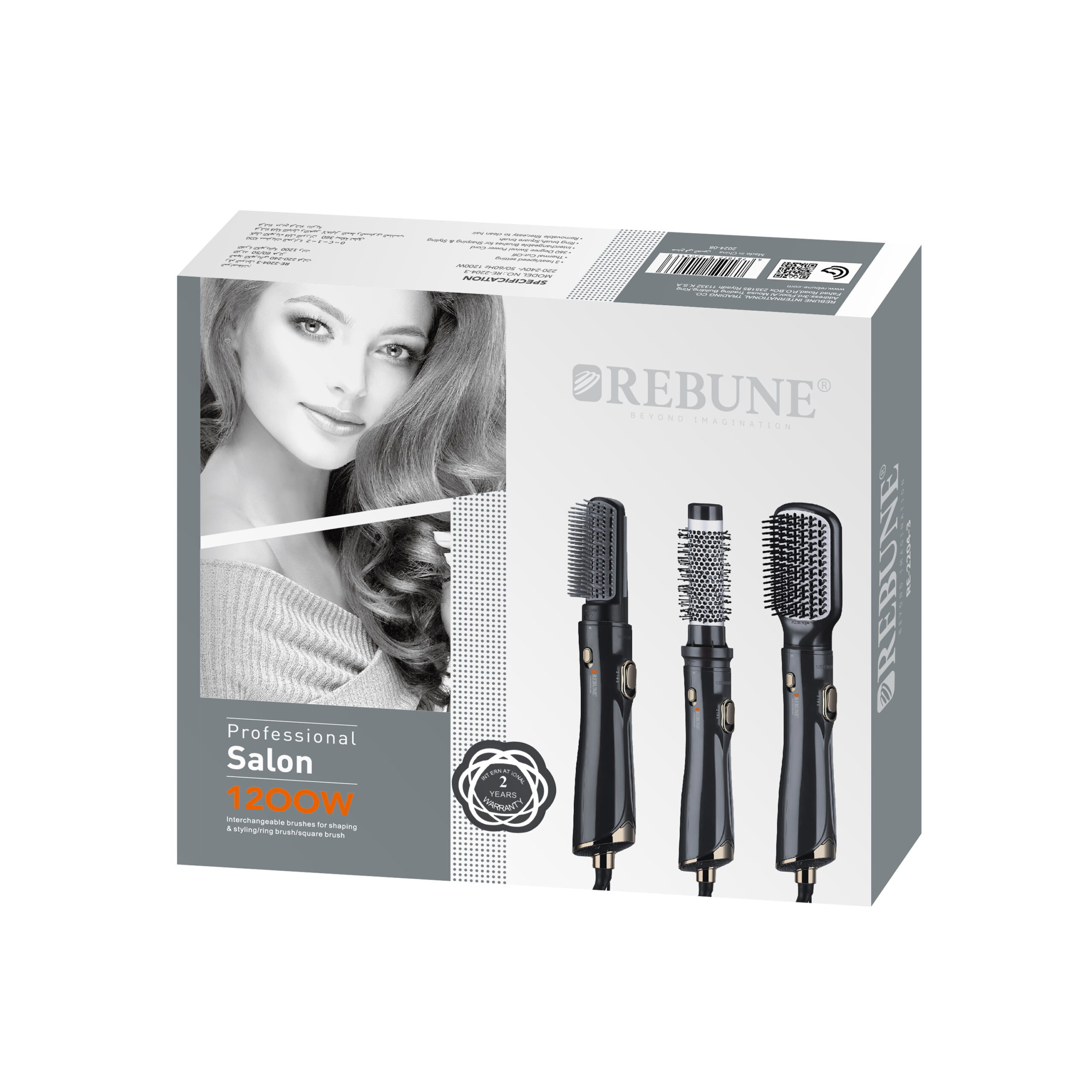 فرشاة تصفيف احترافية مزودة بتقنية الأيونات، تأتي مع ثلاثة ملحقات بأحجام مختلفة مصنوعة من السيراميك والتورمالين مع شعيرات متنوعة تناسب جميع أنواع الشعر.