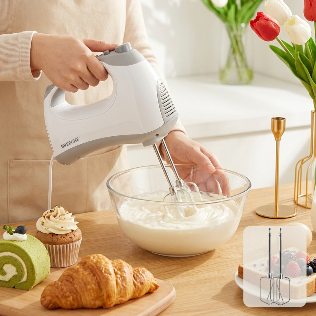 مضرب خفق كهربائي يسهل عليك كل خطوة في المطبخ، من خفق البيض إلى تحضير الكريمة والخلطات بسرعة. أداء ثابت يعطيك قوام متجانس في وقت أقل، مع تصميم مريح يناسب الاستخدام اليومي.