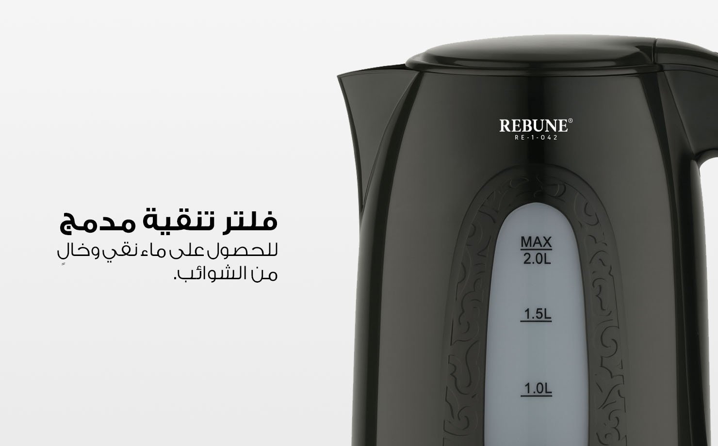 استمتع بتحضير سريع وآمن لمشروباتك الساخنة مع rebune غلاية كهربائية، المصممة لتجمع بين الأداء القوي والتصميم العصري. تأتي الغلاية بسعة 2 لتر وهي مثالية للعائلة أو الاستخدام المكتبي، بقدرة كهربائية تصل إلى 2000 واط لتسخين الماء في وقت قياسي.