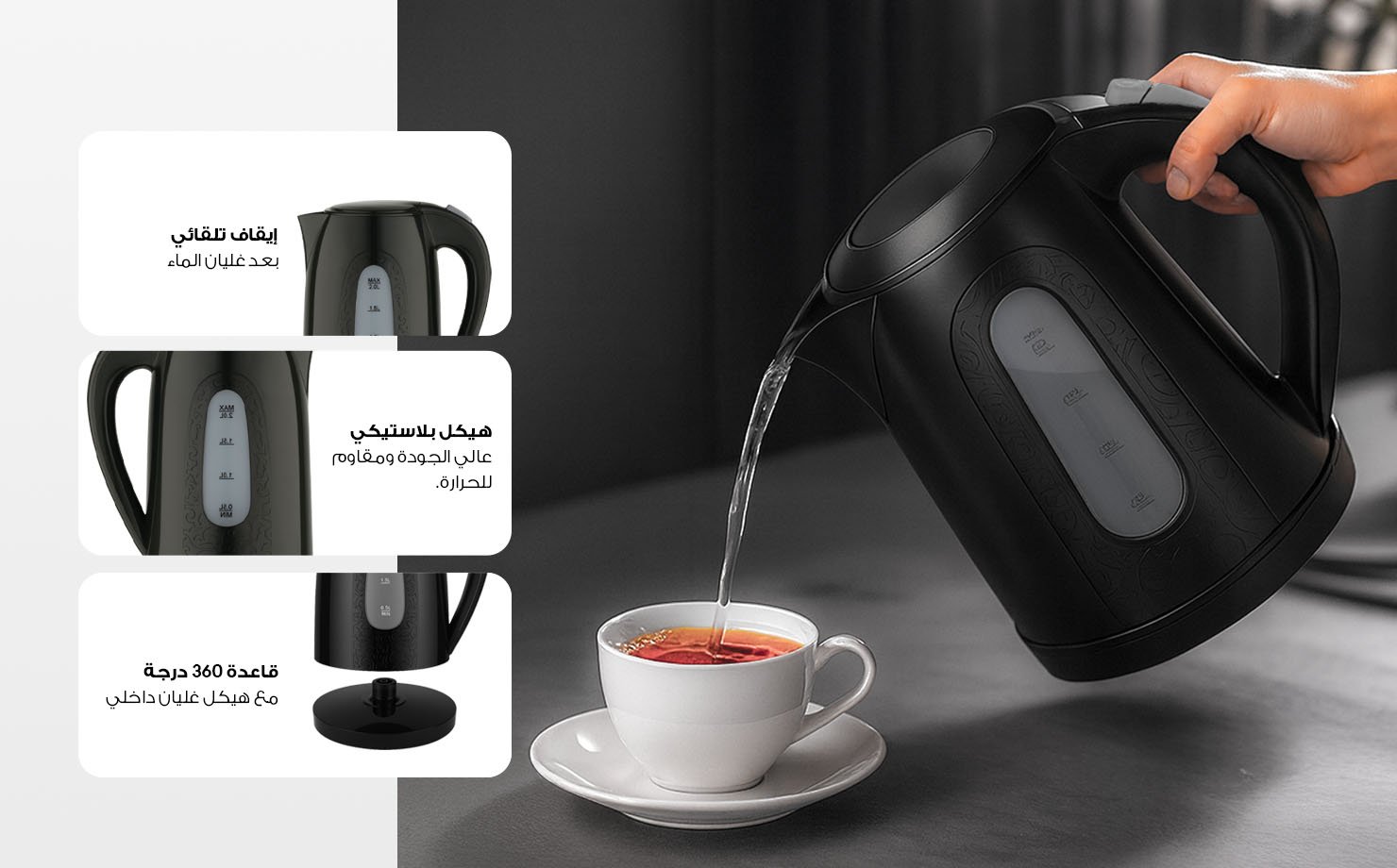 - أداء قوي وسريع: غلاية 2 لتر تقوم بتسخين الماء بسرعة بفضل القدرة العالية التي تصل إلى 2000 واط.