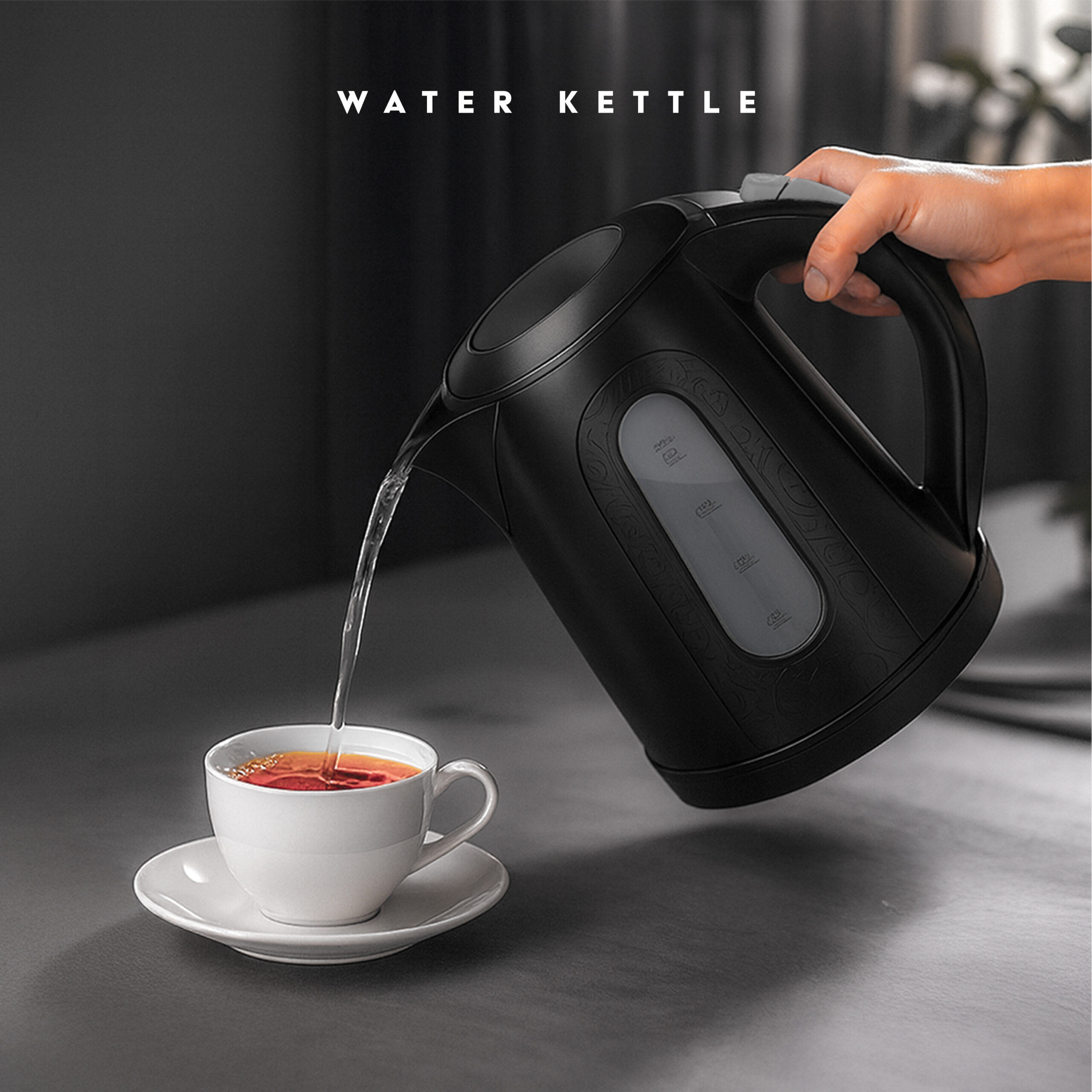 غلاية كهربائية ريبون بلاستيك 2200 واط ، سعة 2 لتر، فلتر تنقية مع مؤشر مستوى الماء، إضاءة داخلية. أسود