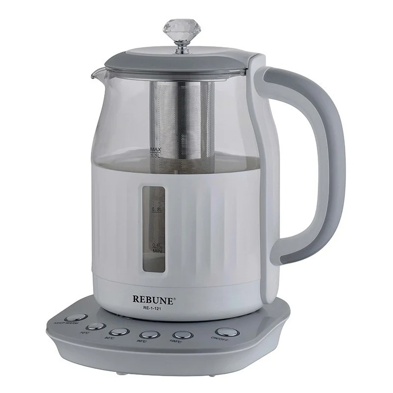 استمتع بتجربة تحضير المشروبات الساخنة كما تحبها مع غلاية REBUNE الزجاجية ذات التصميم العصري والأداء الموثوق. تجمع هذه الغلاية بين الزجاج المقاوم للحرارة والفولاذ المقاوم للصدأ، لتمنحك أناقة لا مثيل لها مع أداء قوي بقوة 2200 واط. مزودة بمؤشر ضوئي LED، قاعدة دوارة 360 درجة، وزر مخصص للحفاظ على درجة حرارة الماء لأطول فترة ممكنة.