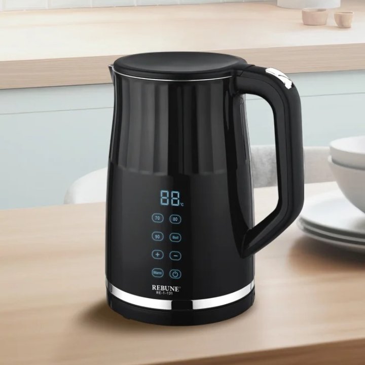 غلاية كهربائية ريبون فاخرة تضيف لمسة من الأناقة لمطبخك وتلبي احتياجاتك المختلفة مع تحكم دقيق في درجة الحرارة بـــــ 7 مستويات مختلفة تتراوح بين 40-100 درجة مئوية ريبون غلاية ماء رقمية ساعد في الحفاظ على الماء دافئ لمدة ساعتين من زمن التسخين.