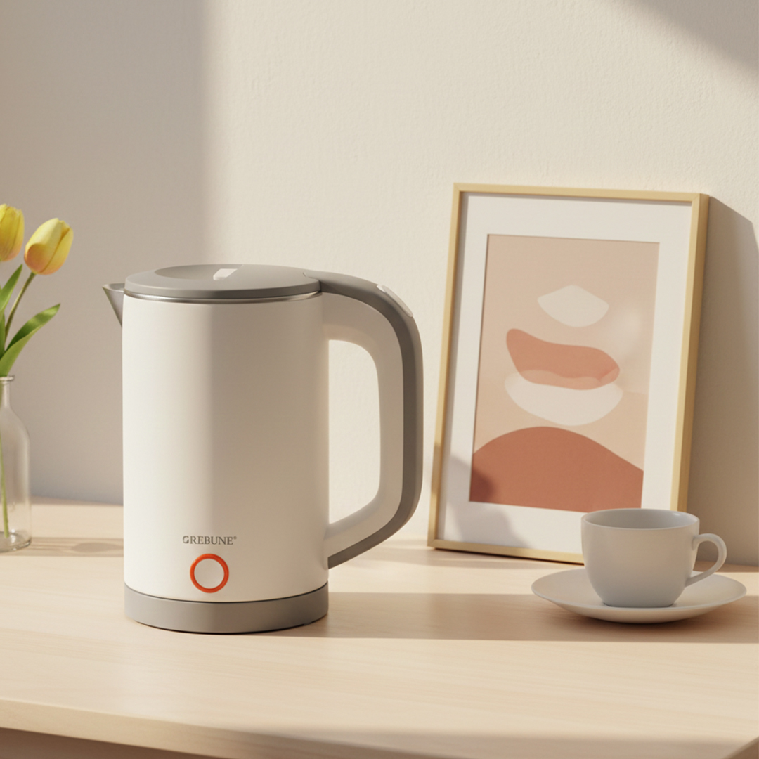 استمتع بتحضير مشروباتك الساخنة مع غلاية ماء كهربائية من ريبون. تصميم عملي مقاوم للحرارة مع قاعدة دوران 360 درجة، و هيكل داخلي من الستانليس ستيل حجم صغير وعملي مناسب للمكاتب