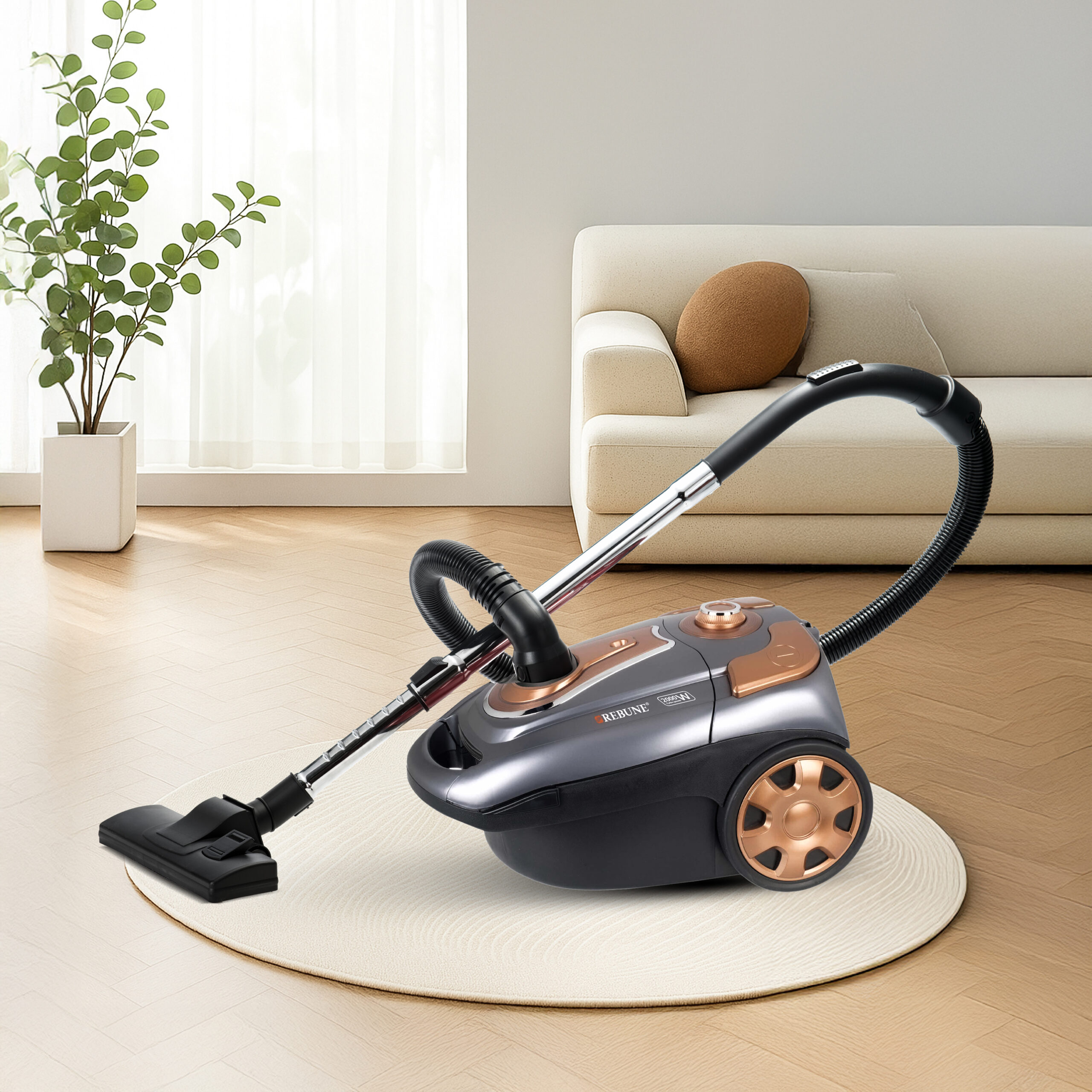 احصل على تجربة تنظيف متميزة مع مكنسة ريبون الكهربائية فائقة الأداء خفيفة الوزن بعجلات مساعدة على التنقل مزودة بفرشاة تنظيف المساحات الواسعة ورأس مشطوف للأماكن الضيقة بقوة شفط 2000 واط بكفاءة عالية، لنظافة استثنائية في منزلك