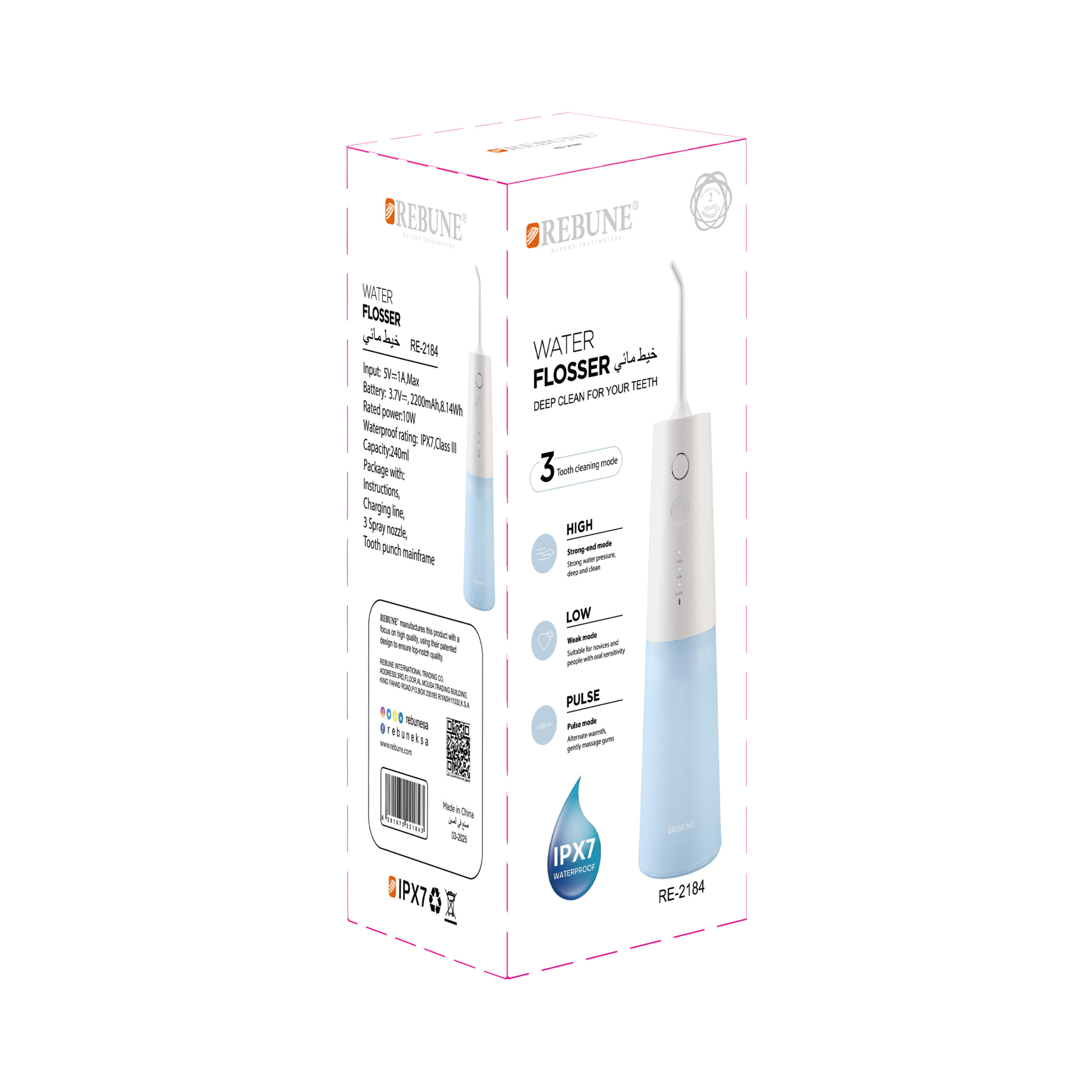 احصل على تجربة تنظيف فموية احترافية في المنزل مع جهاز الخيط المائي من ريبون، المصمم لتوفير تنظيف عميق ولطيف للأسنان واللثة.